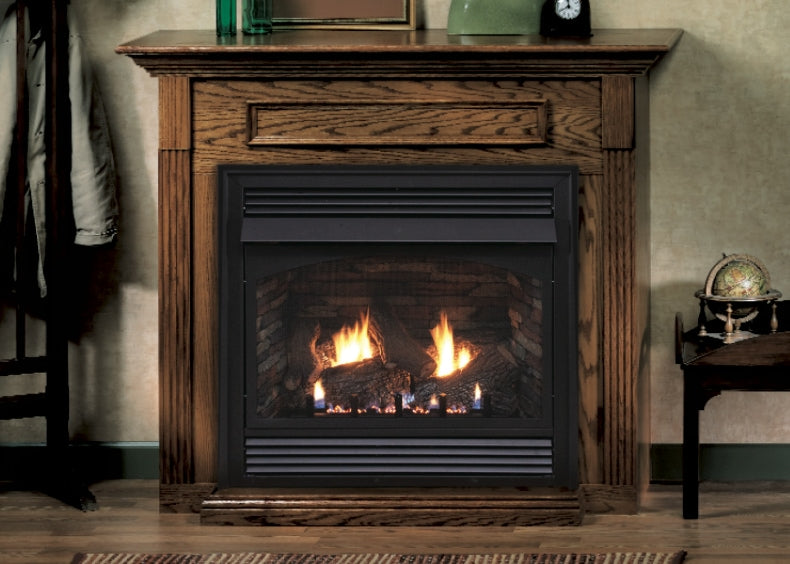 Shown with fireplace and gas logs (not included).