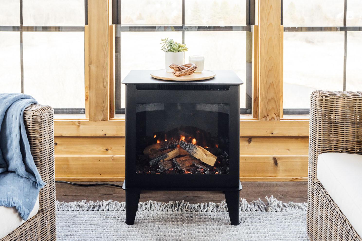 - No venting, no gas lines, no hearth. Sits on any level surface.