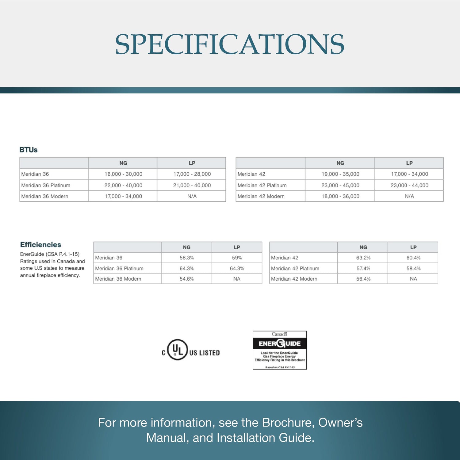 Majestic 42" Meridian Platinum gas fireplace top/rear vent with IntelliFire Touch ignition - Natural Gas