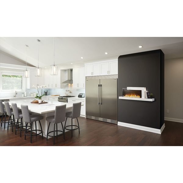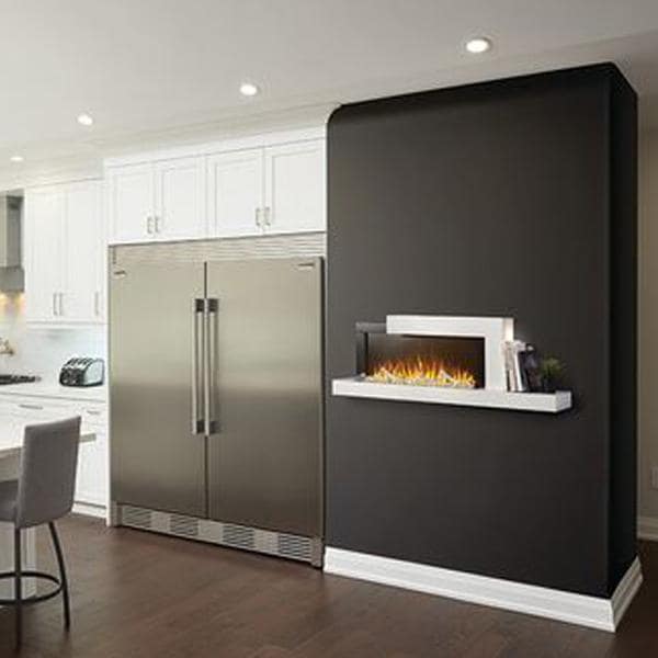 The new StylusTM Wallmount Electric Fireplace enters into the furniture category with a shelf lit up by an accent light as well as a smart LED double USB plug that indicates when your mobile device has finished charging by changing from red to green. The eye catching flames have four color settings as well as five brightness settings which when combined with the six color options of the ember bed create the ultimate in customization. The StylusTM is as much an elegant focal point as it is a functional source of heat for a room up to 400 sq. ft. Perfect for your modern decor or to take your current design to a transitional feel. The contemporary surround offers features such as a dual USB 2.0 charging port with LED color indication of charging status. You can also put something on display on the side shelf with an accent light that offers color and brightness adjustments.