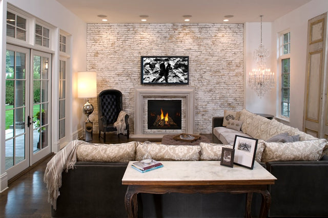 Big interiors need a big fireplace. The True gas fireplace sets the standard in a traditional masonry style. Warm up the good times with the largest view in its class and serious heat. Truly extraordinary.