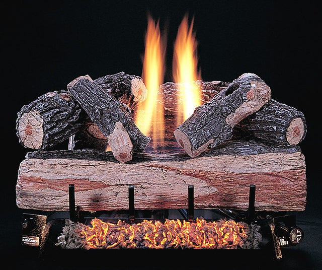 The C2 CHILLBUSTER burners provide a concentrated rear flame with a glowing ember bed in front and traditional styling of logs with a reversible front log for either bark or split look.