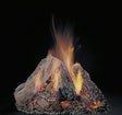 Rasmussen vented burners utilize a pan filler, which completely covers the burner tube(s). The gas pressurizes beneath the filler, then breaks through into a dancing, smoky, wood-like flame. Pan filler is included with all log sets and varies with gas type: White Sand for Natural Gas; Black Volcanic Ash for Propane (plus an air mixer and orifice).