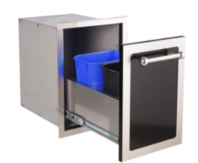 Fire Magic Premium Flush (Soft Close) Trash Cabinet, includes black and blue trash bins - Stainless Steel