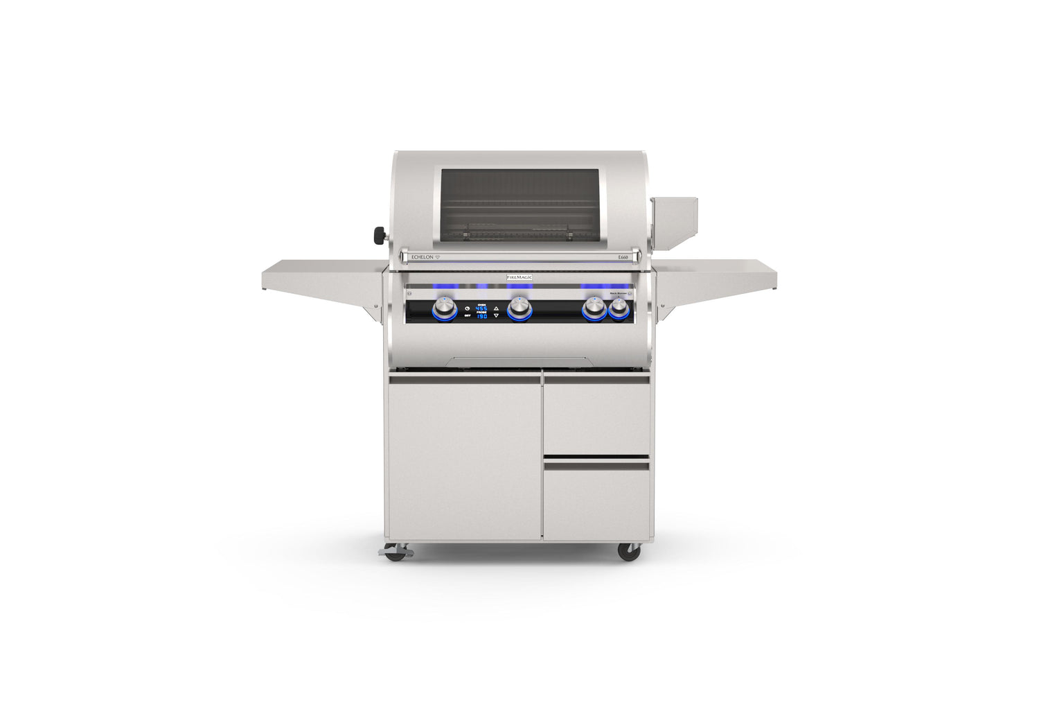 When only the best will do, our flagship Fire Magic ® Echelon Diamond combines the ultimate in performance, beauty and innovation. With sleek lines highlighted by a modern black glass control panel with a digital touchscreen operation and bluetooth remote capability. Cast stainless steel burners power an innovative heat distribution system topped with patented Diamond Sear cooking grids to truly elevate the outdoor cooking experience. The Echelon Diamond defines luxury in grilling.