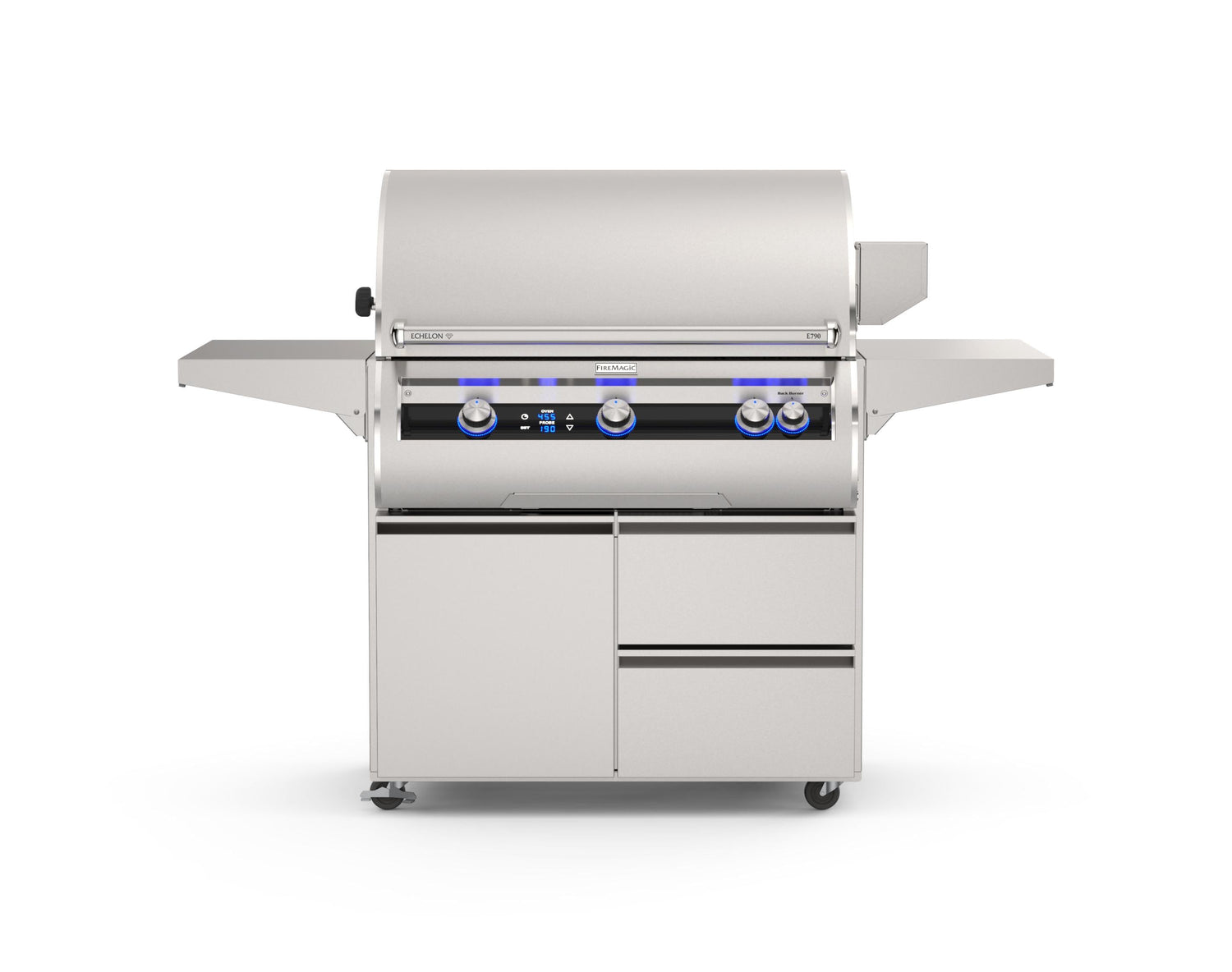 When only the best will do, our flagship Fire Magic ® Echelon Diamond combines the ultimate in performance, beauty and innovation. With sleek lines highlighted by a modern black glass control panel with a digital touchscreen operation and bluetooth remote capability. Cast stainless steel burners power an innovative heat distribution system topped with patented Diamond Sear cooking grids to truly elevate the outdoor cooking experience. The Echelon Diamond defines luxury in grilling.