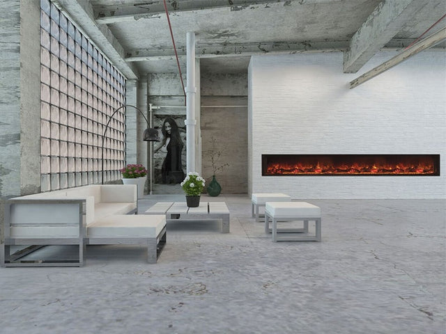 The Landscape FullView 2 Series built-in electric fireplace is the first of its kind creating a perfect substitute for a linear gas fireplace. This unique frameless design allows for edge to edge flame presentation as well as unlimited surround capabilities. A Ê2 stage heater is also included for supplemental heat up to 450 square feet.