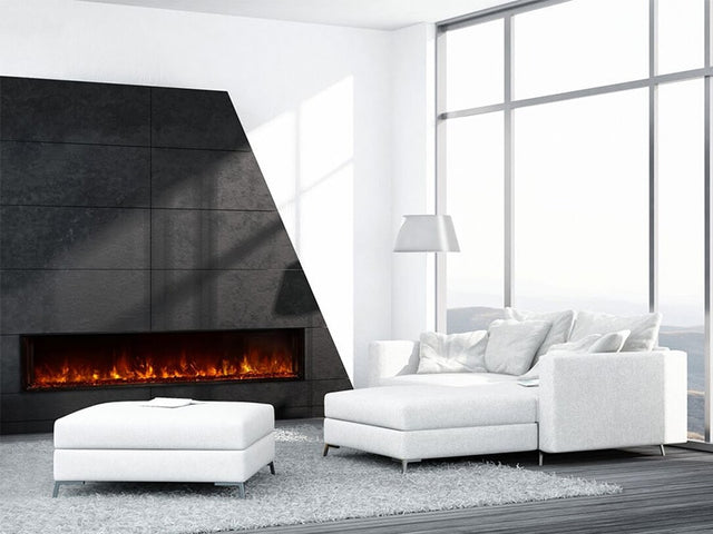 The Landscape FullView 2 Series built-in electric fireplace is the first of its kind creating a perfect substitute for a linear gas fireplace. This unique frameless design allows for edge to edge flame presentation as well as unlimited surround capabilities. A Ê2 stage heater is also included for supplemental heat up to 450 square feet.