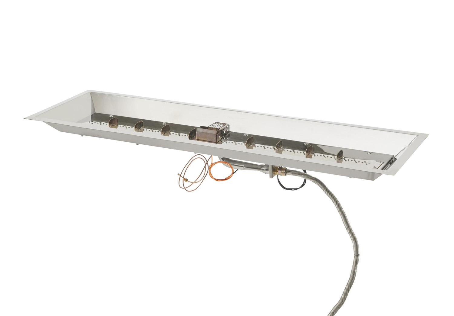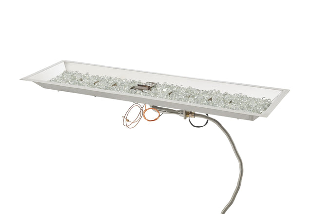 LinearÊStainless Steel Crystal Fire Plus BurnerÊcan be used for custom-built fire pits or your own outdoor fire feature to complement your landscapingÊproject. All burners have a higher BTU capacity and upgraded burner construction for a brighter, taller, fuller, more yellow flame. Adjust the flame height to your desired setting and enjoy. With just the push of a button, a beautiful clean-burning fire appears atop a bed of tempered fire glass gems.