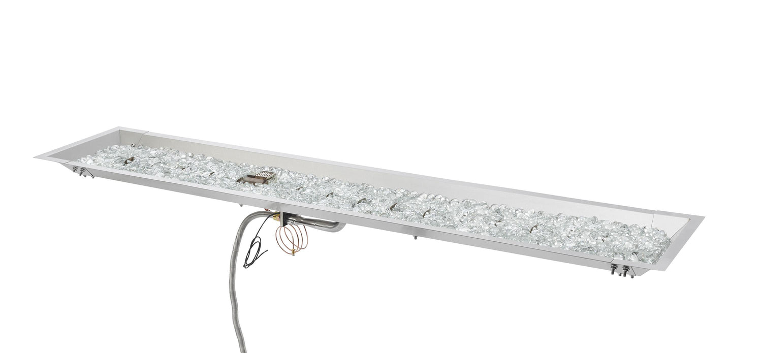 LinearÊStainless Steel Crystal Fire Plus BurnerÊcan be used for custom-built fire pits or your own outdoor fire feature to complement your landscapingÊproject. All burners have a higher BTU capacity and upgraded burner construction for a brighter, taller, fuller, more yellow flame. Adjust the flame height to your desired setting and enjoy. With just the push of a button, a beautiful clean-burning fire appears atop a bed of tempered fire glass gems.