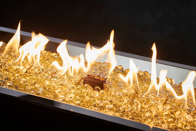 LinearÊStainless Steel Crystal Fire Plus BurnerÊcan be used for custom-built fire pits or your own outdoor fire feature to complement your landscapingÊproject. All burners have a higher BTU capacity and upgraded burner construction for a brighter, taller, fuller, more yellow flame. Adjust the flame height to your desired setting and enjoy. With just the push of a button, a beautiful clean-burning fire appears atop a bed of tempered fire glass gems.