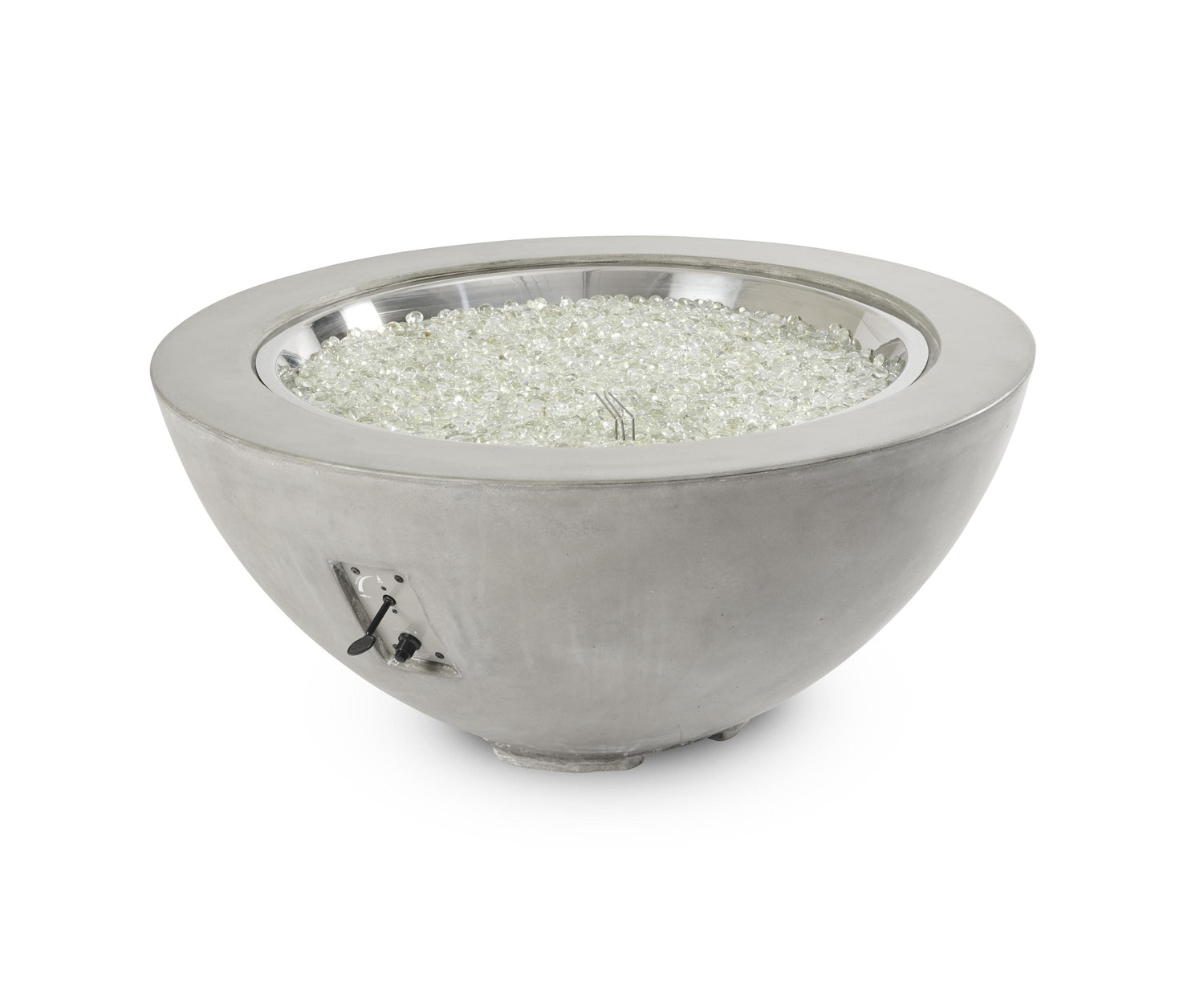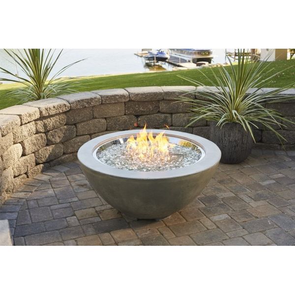 The 42" Cove Gas Fire Pit Bowl is the perfect addition to any contemporary outdoor space. The Natural Grey Supercast concrete lets the focus be on the stunning 30" Round stainless Steel Crystal Fire Plus Burner. The organic, nature of the concrete is unique to each fire pit. Color variations and casual pitting are common attributes to the fire pit.