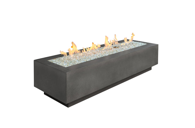 The Cove 72" Linear gas fire pit table is the perfect addition to any contemporary outdoor space. Choose between popular Natural Grey, Midnight Mist, or White Supercast concrete. The natural appearance of the concrete lets the focus be on the stunning Crystal Fire Plus Burner. The organic, nature of the concrete is unique to each fire pit. Color variations are casual pitting are common attributes to the fire pit.