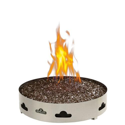 There is nothing more enjoyable than spending time outdoors with family and friends. The Napoleon Patioflame ¨ with Glass allows you to extend your outdoor season whether it be at the cottage, camping or in your backyard. The burner is constructed from all stainless steel for maximum outdoor durability and weather resistance. Available with NapoleonÕs exclusive Topaz CRYSTALINE ª ember bed, the Patioflame ¨ with Glass; is approved for use on wooden decks, stone or brick patios and concrete.