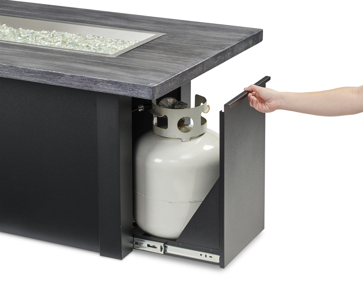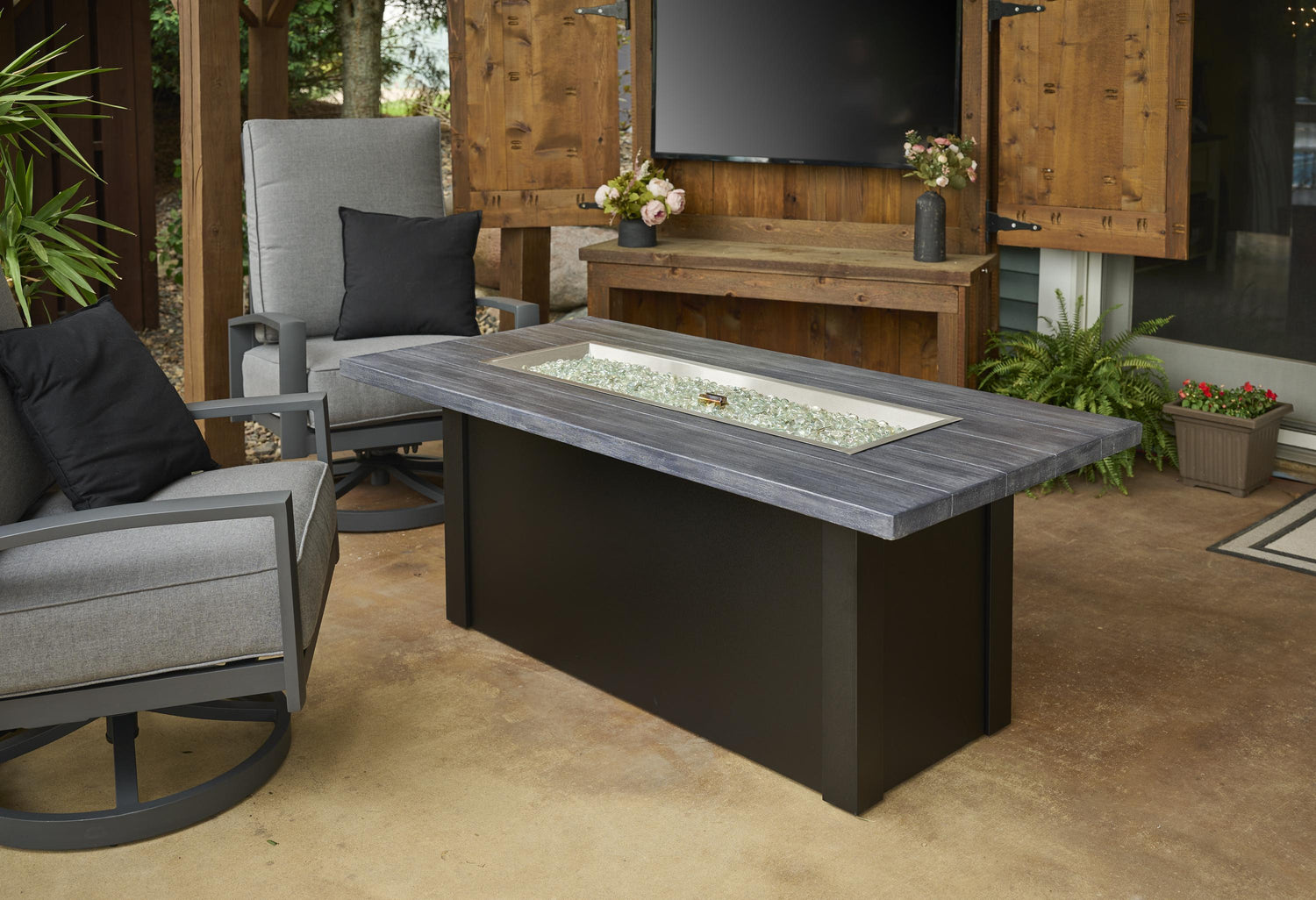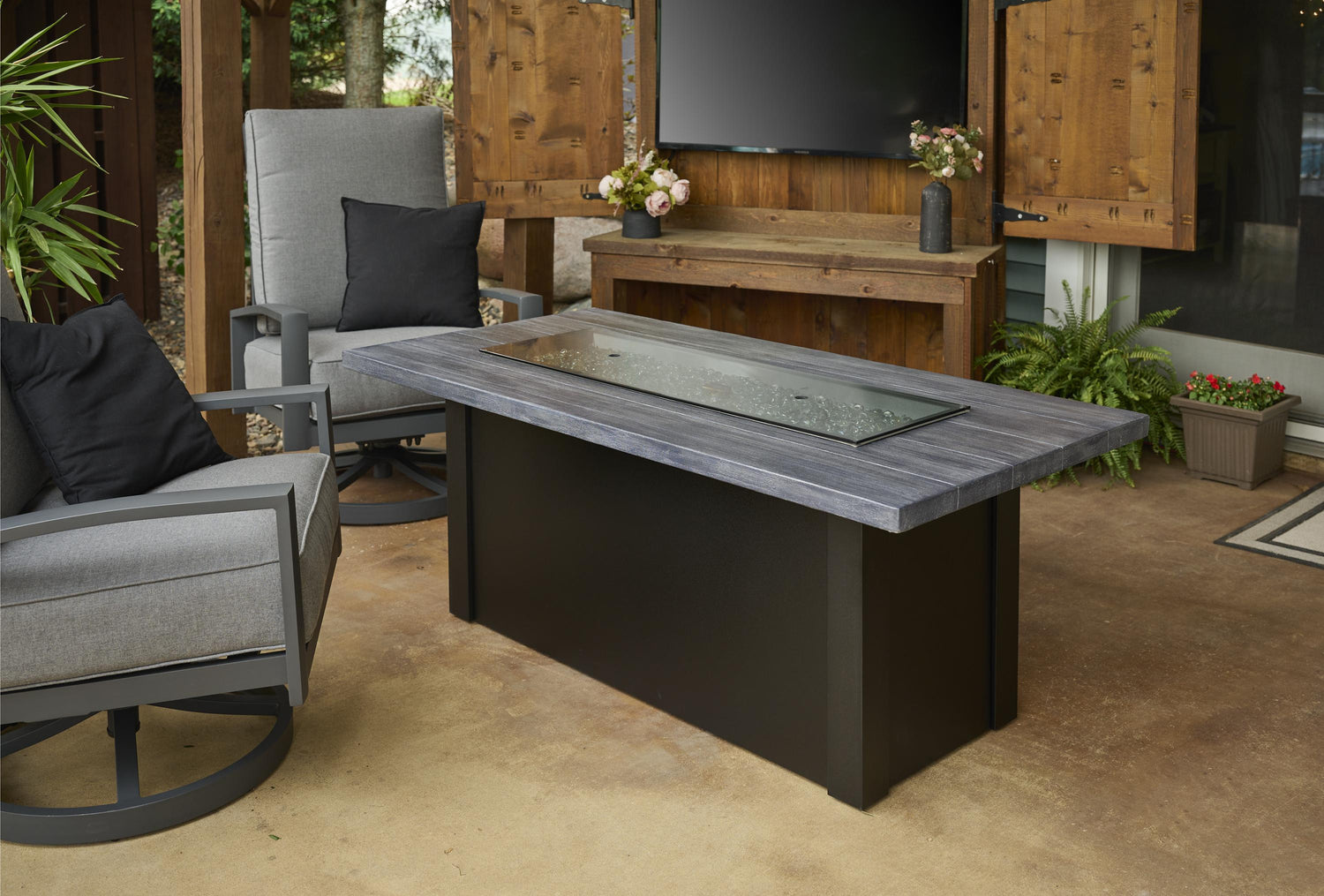 - Glass Top Details: Enhancing both safety and aesthetics, the Havenwood fire pit table includes a grey glass burner cover to safely cover and protect the burner when it is not in use.
