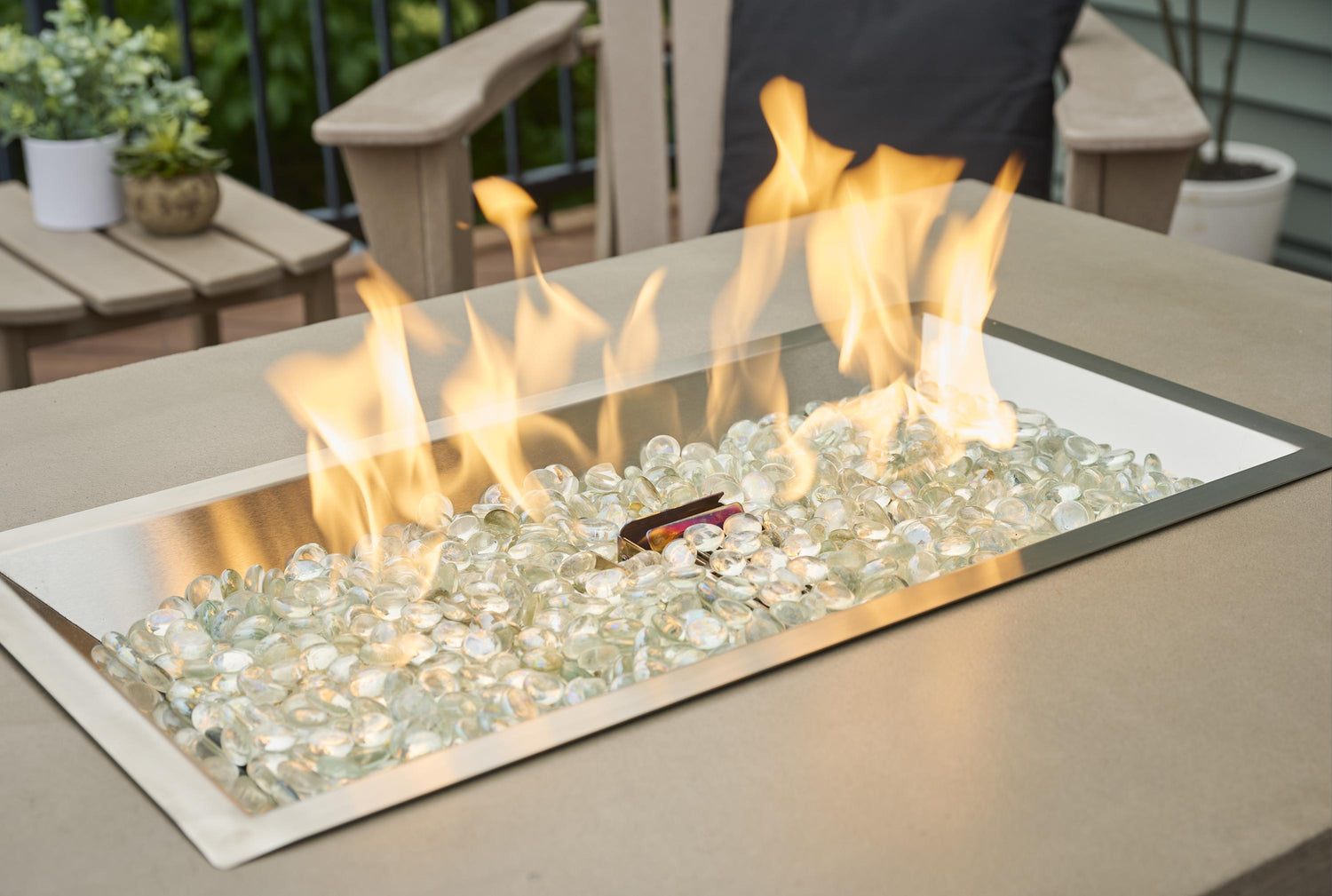 - Glass Top Details: Enhancing both safety and aesthetics, the Havenwood fire pit table includes a grey glass burner cover to safely cover and protect the burner when it is not in use.