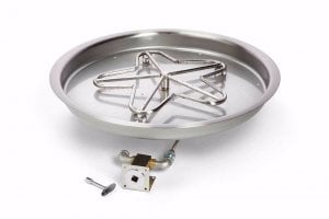 13†Round Bowl Pan, CSA Certified, Match Lit Fire Pit Insert; Includes 13" Round Spun Stainless Steel Bowl Pan, 12" Penta Burner, 65K BTU, 1/2" Straight, 1/4 Turn Key Valve and key, with mounting bracket, excess flow valve, 36" Whisper Flex Gas Line from Pan to Key Valve. LP includes Spider Guard Screen around Air Mixer/Orifice. – FOR LP GAS USE ONLY