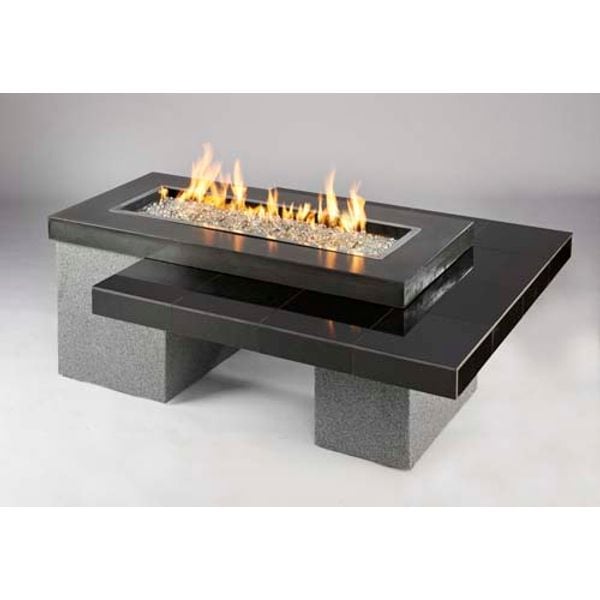 A modern look in granite and stucco, the Black Uptown Gas Fire Pit Table is designed with clean, simple lines, and engineered to showcase a 12" x 42" Stainless Steel Crystal Fire Plus Burner. This stunning glowing fire is sure to heat up your outdoor space. The 2-tiered table design is functional as well as beautiful and makes for a perfect area to entertain.