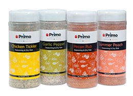 A perfect way to enhance the flavor of beef, chicken, pork, poultry, lamb, seafood, and vegetables. Created specifically for Primo by well-known spice and seasoning developer John Henry. Pecan Rub (pictured with Chicken Tickler, Summer Peach & Garlic Pepper not included ) 11oz bottle