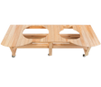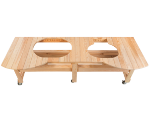 Designed for the outdoor chef who enjoys the beauty of a wood table and would like the option of cooking on an Oval XL 400 and/or an Oval JR 200. Comes unfinished. Two locking caster in the front. Comes unfinished. Ceramic shoes included (#604).