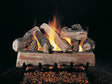 Reversible Bark/Split Logs and pine cones. Straight one piece front log. Larger scale is good for masonry and larger factory-built fireplaces.