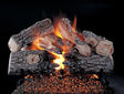Large scale set with heavy bark, split and char features. Two piece front log. Good for masonry and larger factory-built fireplaces.