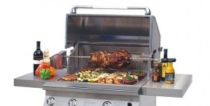 If the Solaire grill you choose is not equipped with a rear rotisserie burner, you can still do rotisserie-style cooking with the main grill burners and this optional rotisserie kit.