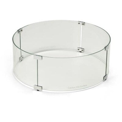 30†Round Tempered Glass Wind Guard. 4 Piece Wind Guard, 3/16†Clear Glass, 30†Diameter, 6†Tall; Includes polished aluminum brackets and plastic support feet.